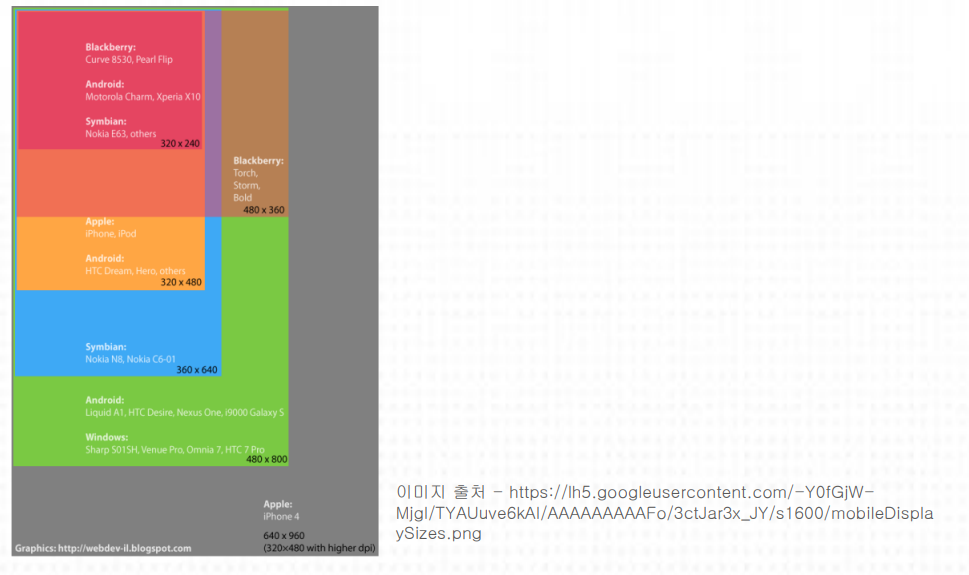 - 디바이스(해상도)대응: 디바이스 종류에 따른 해상도 대응의 범위
